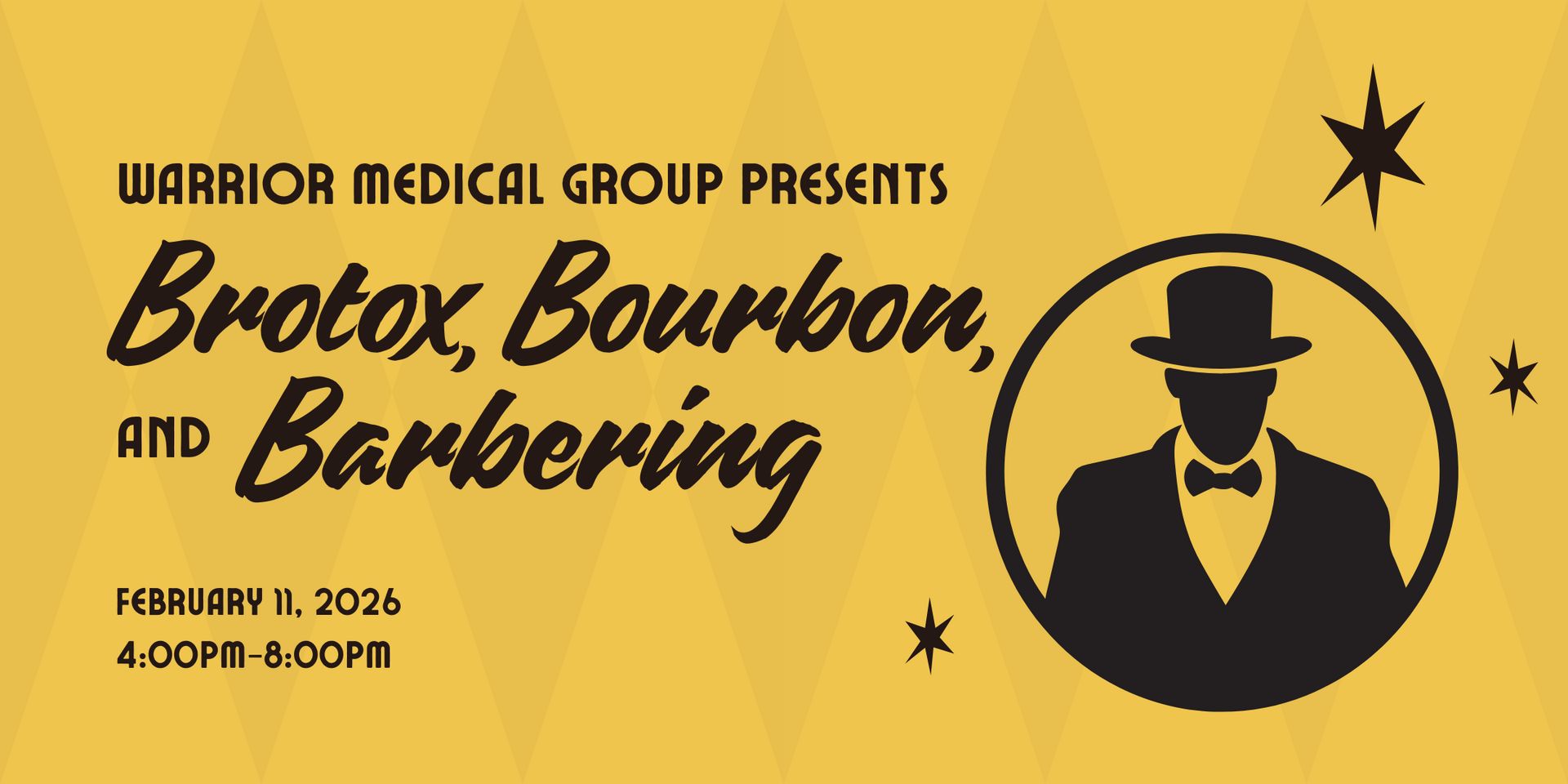 Gentlemen, this one’s for you. Warrior Medical Group is hosting Brotox, Bourbon, and Barbering—an elevated evening for men who want to look sharp, feel better, and enjoy the process.